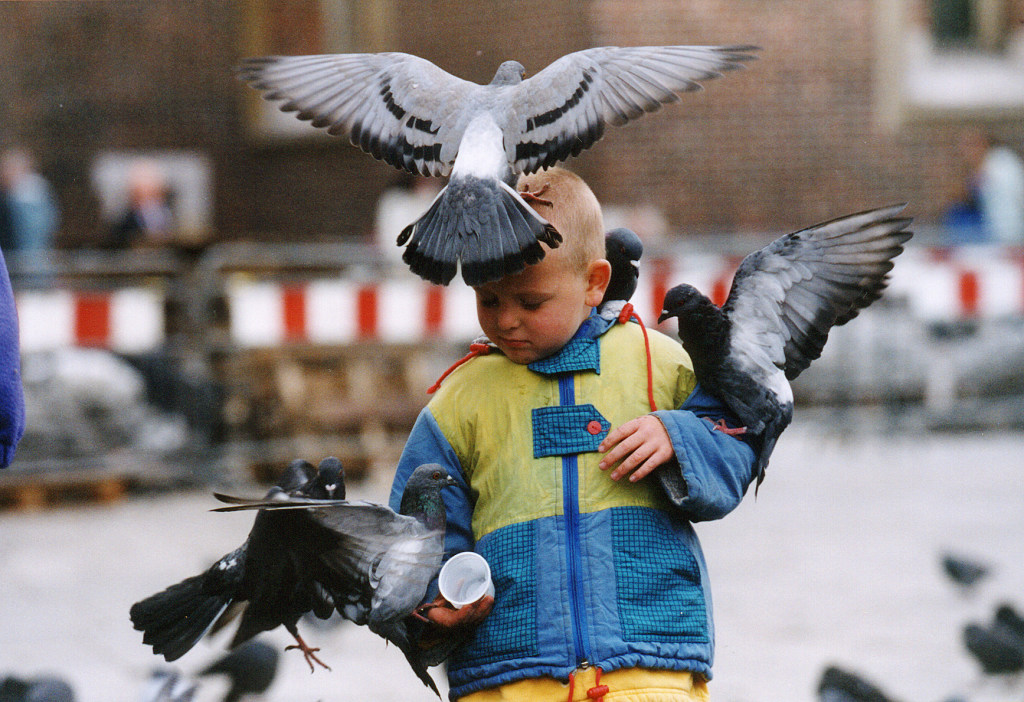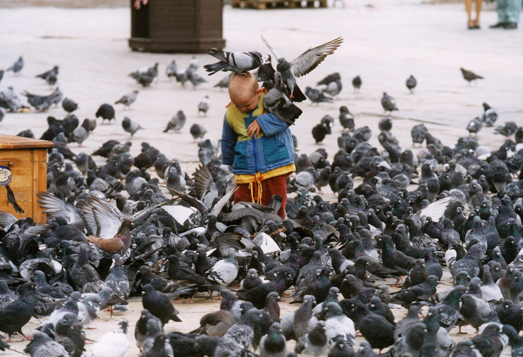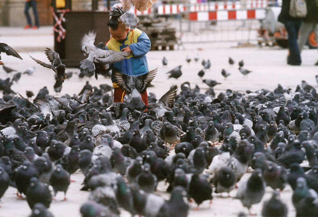 ![]() | auf dem Marktplatz jede Menge Tauben |