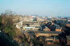 From the castle you've got a nice view over the city. Once the castle has been a lot higher. But in history it was destroyed several times, and the last time it was rebuild the hill was flatened to get more space on top.