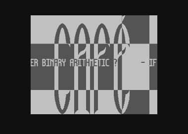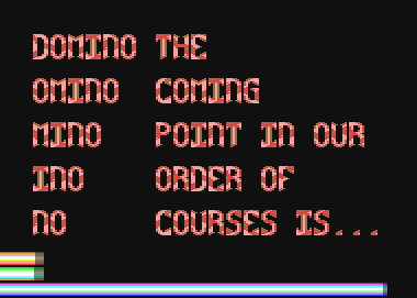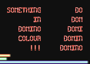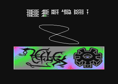 This is the loader screen with some "odd" texts. And all the time we have playing a lengthy, 7 minutes or so, double-speed-music (in a trackmo!). In the border is an equalizer.