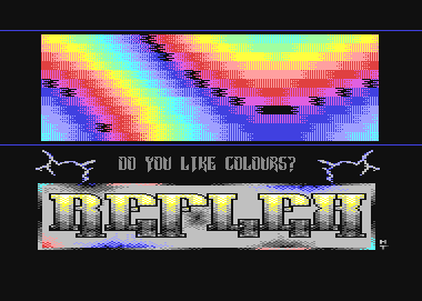 Here you see the plasma-part. There is a little story about this: Somehow in the hectic of the last ours before the deadline there came an old version of this part in the demo. There should be an $d016-interlace over the plasma, but in this version it's static.