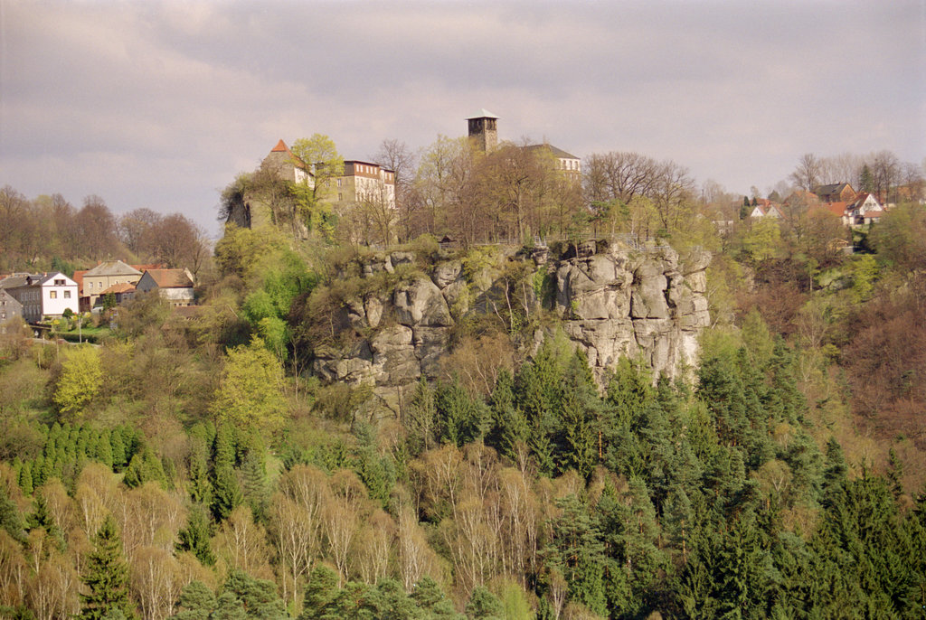 Blick vom Hockstein zur Burg Hohnstein