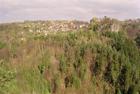 Vom Hockstein hat man eine schöne Aussicht in das Polenztal und auf Hohnstein.
