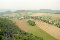 Panorama vom Papststein inklusive Kohlbornstein und Lasensteine und dem Rosenberg und Papstdorf