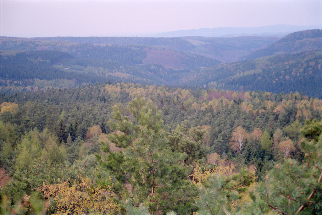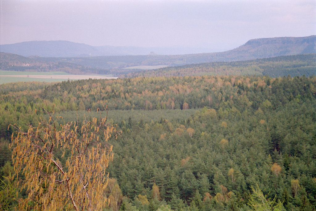Blick vom Spitzstein zu den Schrammsteinen, den Lasensteinen und dem Kohlbornstein
