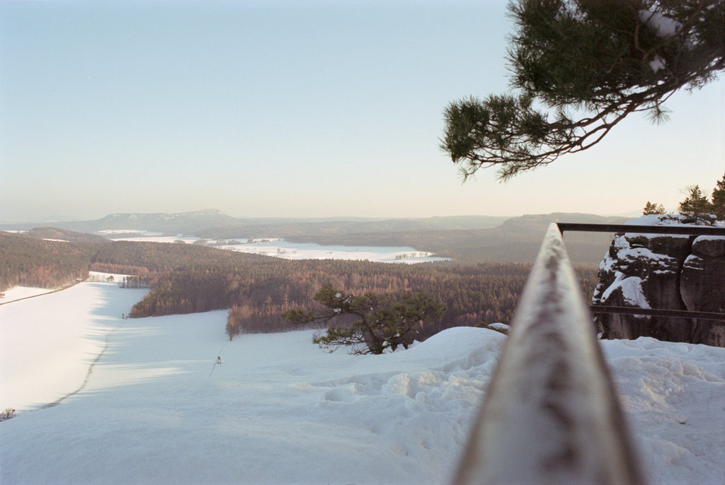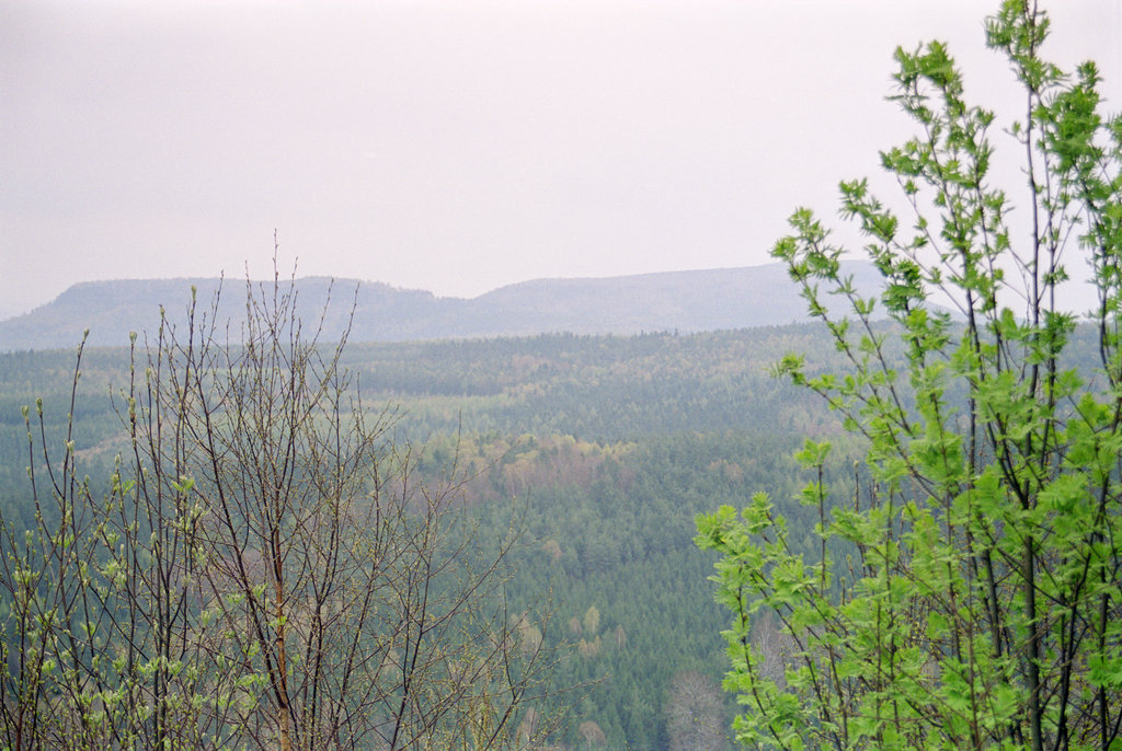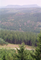 Aussicht beim Prebischtor mit den Zschirnsteinen und dem Hohen Schneeberg